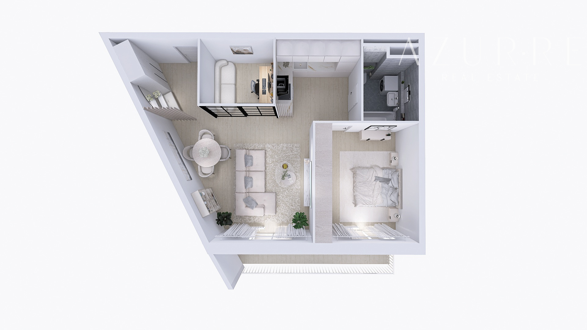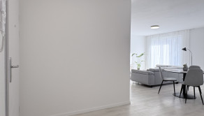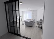 Súčasťou apartmánu je pol izba oddelená presklenými dverami, ktorá ponúka flexibilné využitie – ako pracovňa, šatník alebo detská izba.
