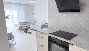 Štandard a vybavenie: Byt je momentálne v štandarde zariadený. Kuchynská linka je robená na mieru stolárom a obsahuje všetky vstavané spotrebiče. Možnosť zariadenia na kľúč !